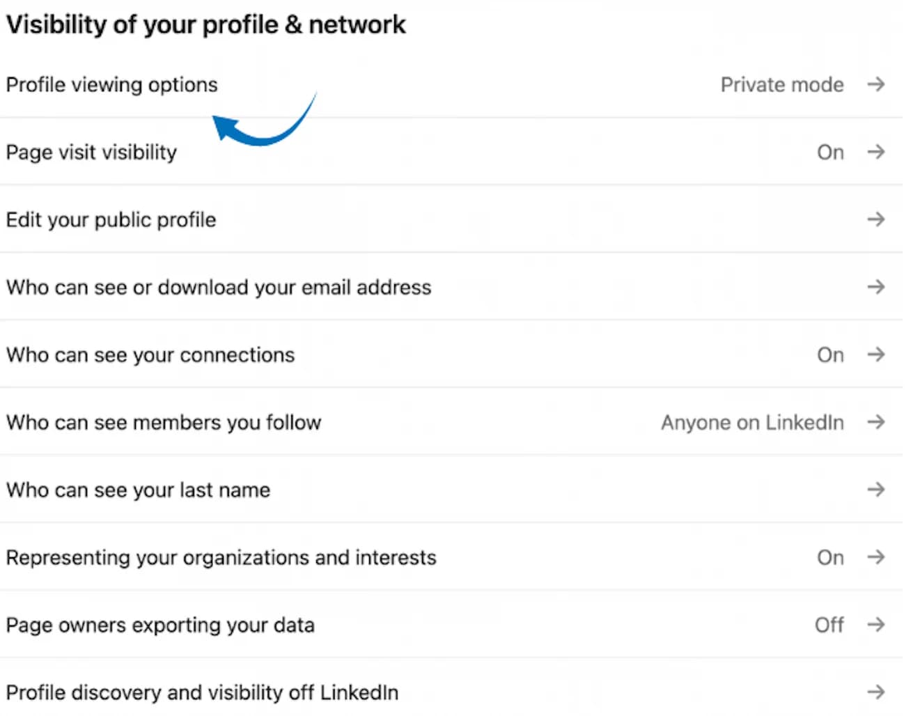 Find “Profile viewing options” and tap on it